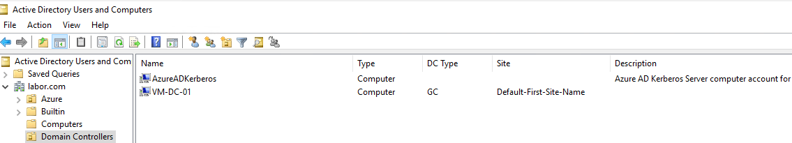 Amikor a Microsoft Entra Kerberos engedélyezve van egy Active Directory tartományban, a rendszer létrehoz egy AzureADKerberos nevű számítógépobjektumot. Ez az objektum: